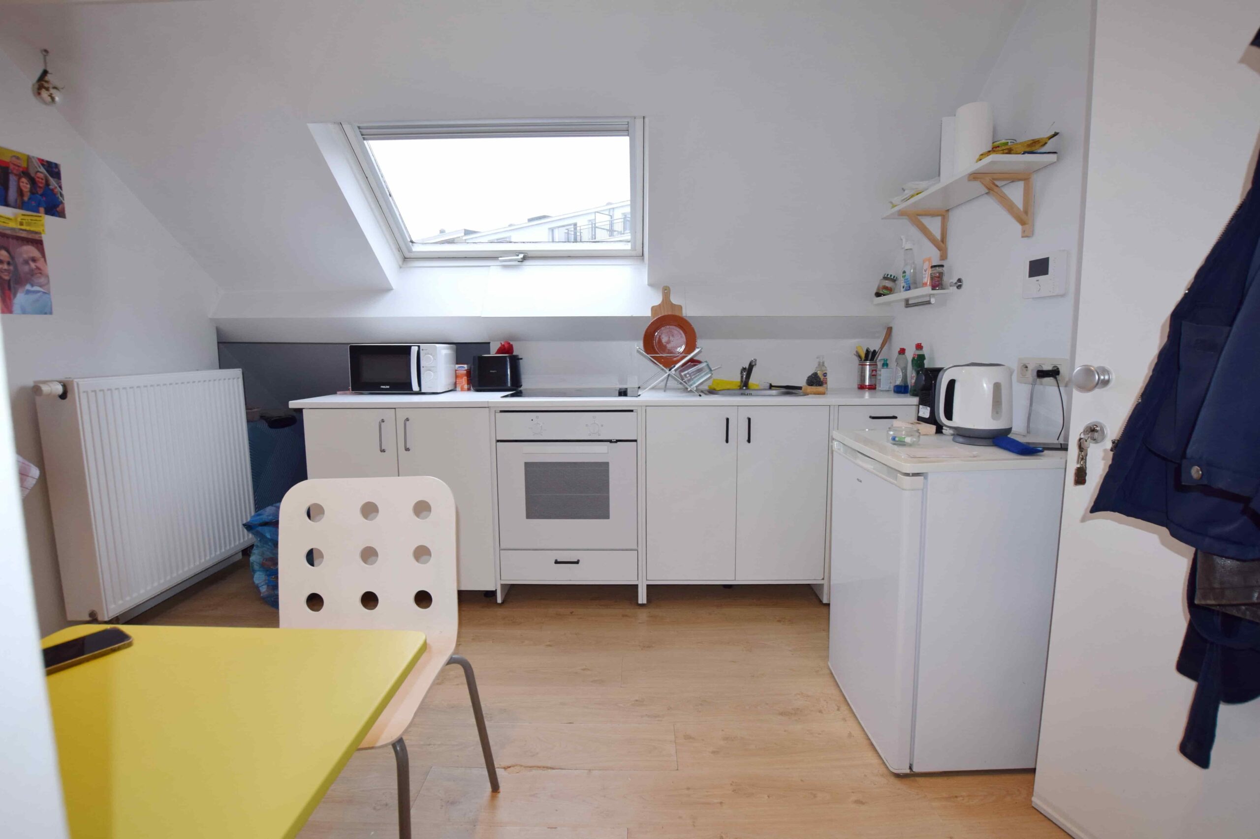 Au 3eme étage et dernier: Un studio lumineux de +/- 25m² composé d’une cuisine équipée, une chambre /espace de vie, une salle de douche avec une toilette. PEB G. Actuellement loué , loyer de 700 euros.