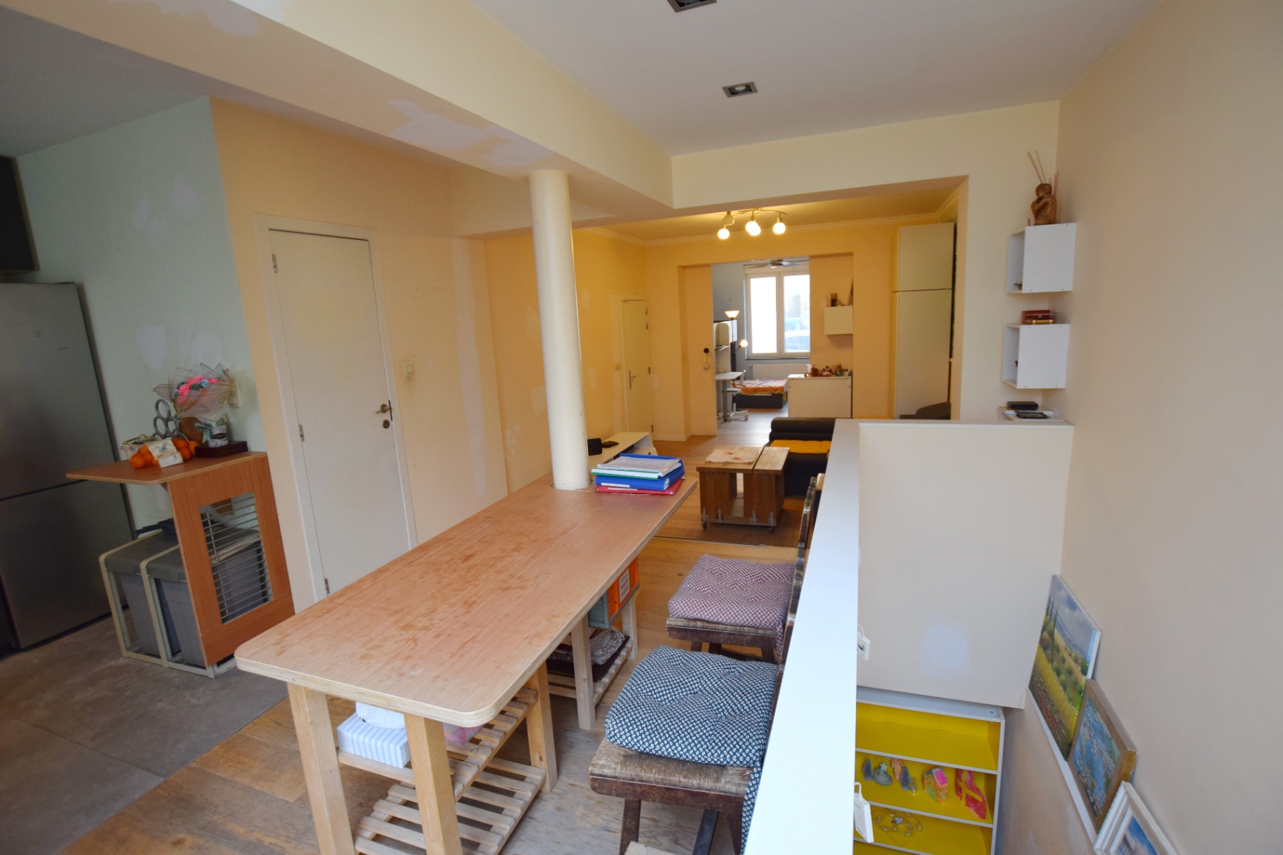 Quartier Poseidon: dans une petite copropriété Souplex 120m² au rez: une chambre de +/- 18m², un espace de vie, une cuisine ouverte avec sa salle à manger, une pergola suivi d’une terrasse et d’un jardin , une toilette et un vestiaire. Au sous sol: une salle de bain avec toilette, un couleur de nuit, une chambre de +/- 13m², un bureau de 9m² et une cours anglaise donnant sur la chambre et le bureau. PEB E-