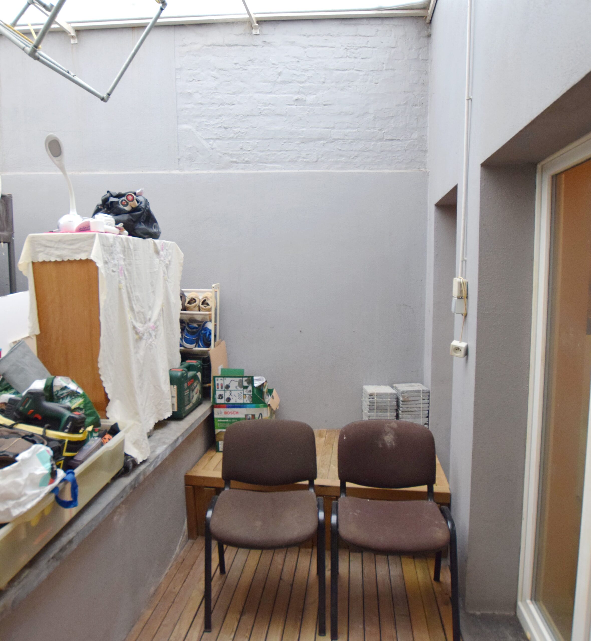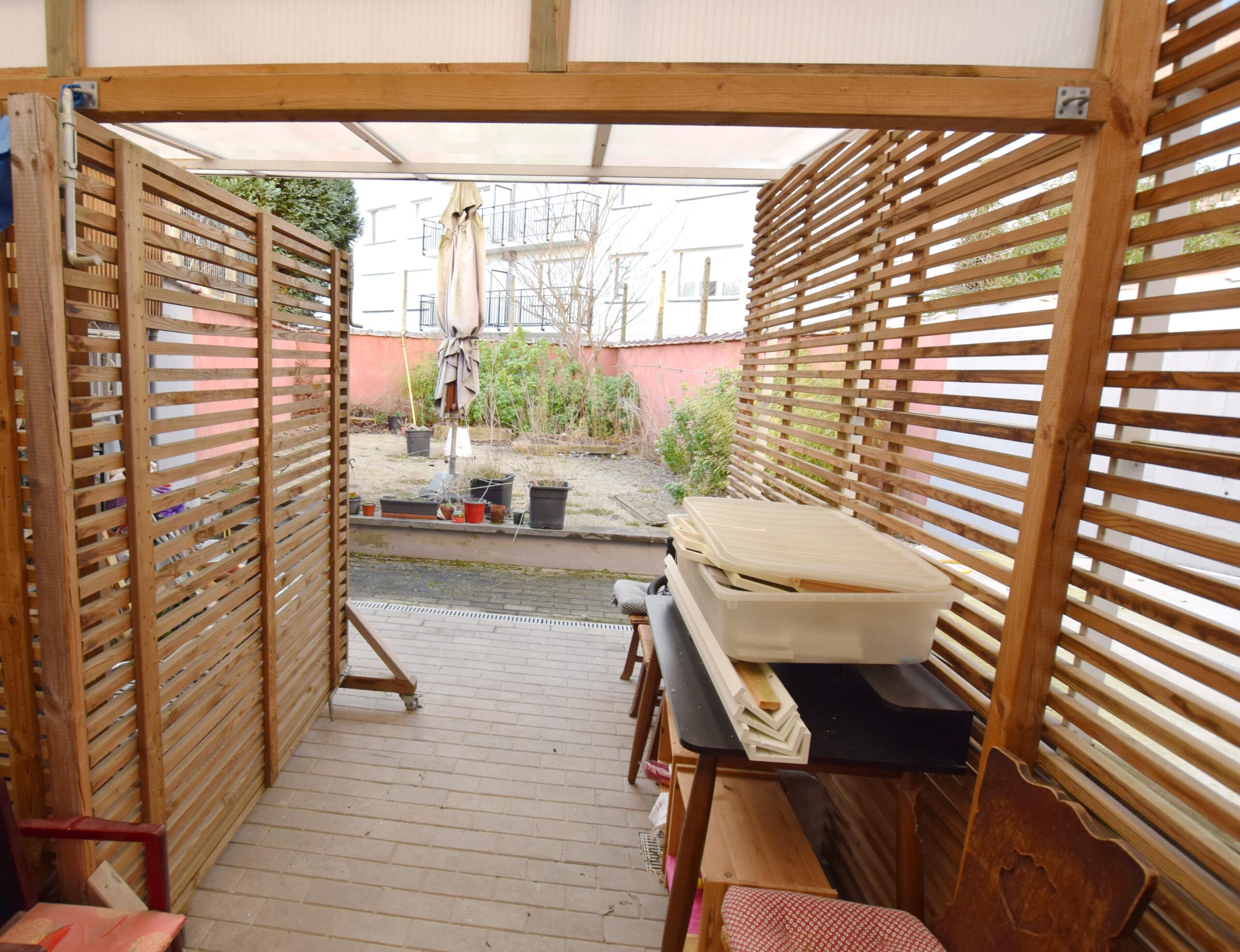 Quartier Tomberg, dans une petite copropriété Vente d’un lot: Souplex de 120m² au rez: une chambre de +/- 18m², un espace de vie, une cuisine ouverte avec sa salle à manger, une pergola suivi d’une terrasse et d’un jardin , une toilette et un vestiaire. Au sous sol: une salle de bain avec toilette, un couleur de nuit, une chambre de +/- 13m², un bureau de 9m² et une cours anglaise donnant sur la chambre et le bureau. PEB E-
